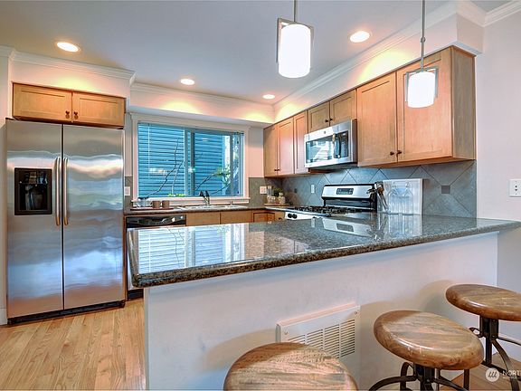 This stunning, townhome offers the perfect blend of comfort and style. 3 bedrooms and 2 bathrooms, this Magnolia gem has an open and light-filled floorplan. Step into the living room, with beautiful hardwood floors, plush carpeting, and an elegant tile gas fireplace - perfect for cozy evenings. The kitchen features sleek stainless steel appliances, granite countertops, abundant cabinet space, and recessed lighting. Private, top-floor owner’s suite, complete with vaulted ceilings, large windows, a walk-in closet, and a luxurious owner bathroom suite. Ample storage throughout the home. Enjoy easy access to Downtown Seattle and local neighborhoods. Discovery Park is just a short walk away. No HOA fees or sewer capacity charges.