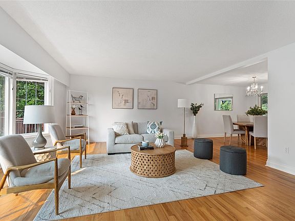 Welcome to your new tranquil retreat! This beautiful, bright, and spacious home is a true gem. The main floor features a sun-drenched living, kitchen, and dining area with stunning stone accents and expansive windows. Upstairs, the private master suite is a luxurious escape, complete with a large walk-in closet and its own exclusive patio. This floor also offers a landing space, perfect for a home office. The lower level provides incredible versatility with a huge recreation room and a small cooking area. This level also includes its own separate entry leading to a private patio and the home's fenced yard, which is surrounded by gorgeous, mature trees. This property is a haven of privacy, with a two-car garage, driveway parking, and a separate shed in the back yard. Located on a quiet, family-friendly street within walking distance to the beach. With multiple patios and balconies, this home truly invites the outdoors in.