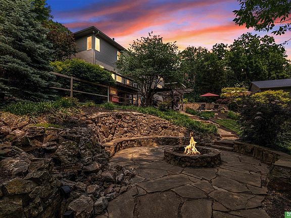 Dual fireplacesWet barRec roomPrivate suiteSoaring ceilingsFire pitMature landscaping