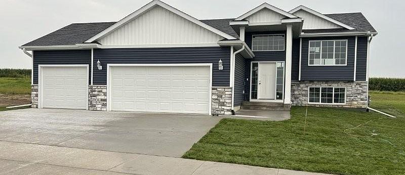 New Construction. 4 bedroom, 3 bath split entry features vaulted ceiling, kitchen island, Quartz kitchen and vanity tops, painted paneled doors and woodwork with owners bath featuring ceramic walk-in shower, soaking tub, double bowl vanity and linen. Walk-in closets in main floor bedrooms. Close to schools.