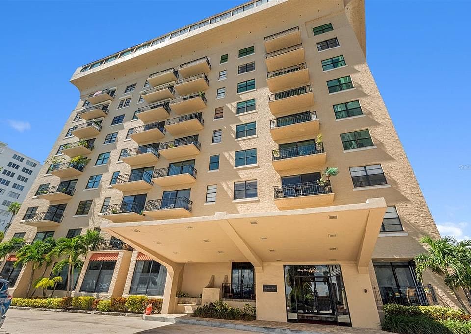 One or more photos have been virtually staged. This rarely available high-rise penthouse is located on beautiful Bayshore Boulevard in the Bayshore Royal building. There is 1,763 square feet of living area, making it the largest 2 bedroom 2 bath condo available for sale in South Tampa. It has been freshly painted throughout and new appliances have been installed. The kitchen counter tops are granite. There is a new stainless steel, side by side, counter depth refrigerator with ice and water available through the door. The range, microwave, and dishwasher appliances are also stainless steel. The under-counter wine refrigerator is brand new. The kitchen has a double under mount stainless steel sink with a garbage disposal. The kitchen has oak cabinets with crown molding and a nice stack of drawers. There is room above the cabinets to display collectibles or the space could be used to store items used only occasionally. Adjacent to the kitchen is a very large breakfast nook near the windows with panoramic views of the South Tampa community. The very private primary suite can be accessed through a set of double 18 light wood French doors that open to the sitting area in the suite. The primary suite also has 8’ double wood pocket doors that can be retracted and this feature contributes to the overall spaciousness of the condo. The ensuite bath has double pedestal sinks with new plumbing fixtures and new upscale light fixtures over each sink. There is a generous amount of cabinet storage in the ensuite bath. The secondary bedroom is on the other end of the condo and has brand new carpeting. There are two closets in this bedroom, one of which has a Murphy bed. The secondary bath has new plumbing, new light fixtures, and shelving for storage. The large living room has marble floors. The millwork in the condo includes crown molding, decorative columns, and fluted trim. The dining room also has marble floors and a closet that could be used to store China, glassware, and silverware. Beyond the living and dining room, the ceilings soar to an almost 13’ vault and this area could be used as a home office or library. There are several ceiling fans throughout and the switch plates on all the electrical outlets have been replaced and upgraded to a rocker type switch. There is a utility closet near the kitchen that has a new washer/dryer combination unit. The utility closet also has shelving that can be used to store laundry items. There are retractable shades on all windows. The Bayshore Royal building is very convenient to the downtown Tampa area, upscale shopping, sporting events, concerts, and major employers. Wonderful value!
