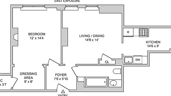 This spacious one bedroom is so well laid out, with an eat in kitchen, decorative fireplace, spacious bedroom and renovated bathroom. Good closets and beautiful wood floors, large windows add to the enjoyment.