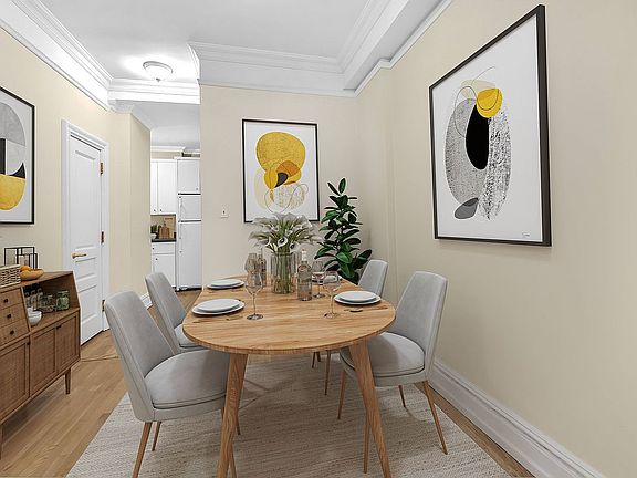 Very high ceilingsSeparate dining areaHardwood floorsWindowed bathFacing south and westLoaded with pre-war detail