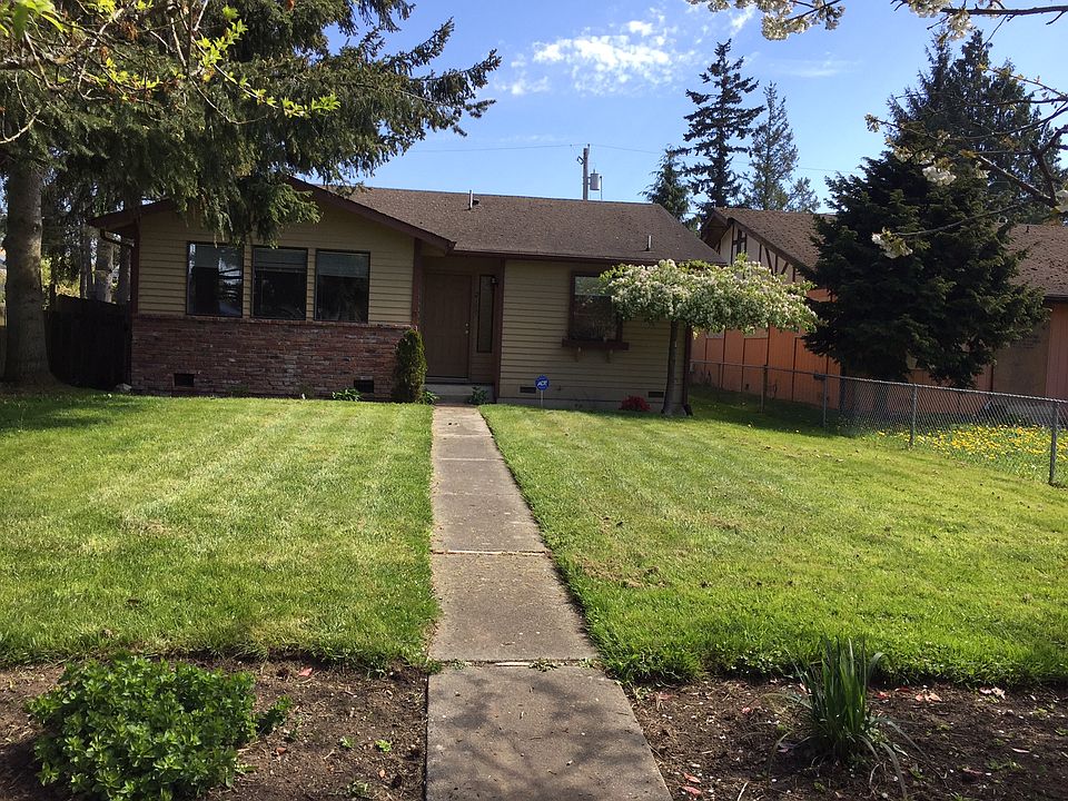 Fully fenced, fruit trees, front and back yard, friendly neighborhood, evergreens, within block of schools, park. Within mile of all amenities.