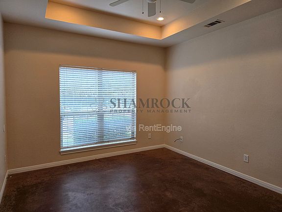 3 bedroom 2 bathroom unit located near downtown shopping and Waco Dr! Stained concrete flooring throughout the unit. Kitchen includes a refrigerator, stove/oven, microwave, and dishwasher. Master suite with a vanity, shower/tub combo, and walk-in closet. Laundry hookups in unit with central heating and air conditioning. Fenced patio and lawn care provided by Landlord.