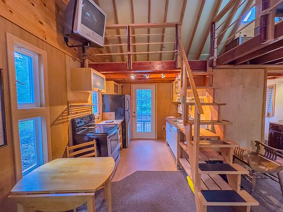 Perfect secluded tiny house for a couple to nest in near Rainy Lake. Driveway is gated and the house sits on 3 mostly wooded acres. Wake up to coffee and watch the deer out the front window. Plenty of space to store your toys and or RV. Bohman Landing Public Boat Ramp is just 3 blocks northeast tucked away in Crystal Bay. The sleeping loft has a skylight to watch the stars. After a long day of fishing, hiking or snowmobiling, relax in a full size tub with hot water supplied by a tankless heater. Plenty of room to build a bigger house if you decide to grow your family. Between the rock and the lush moss, it is mower free!