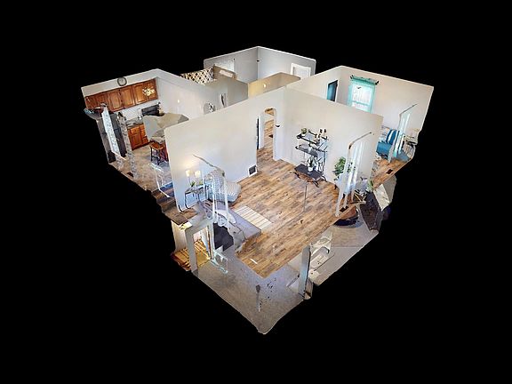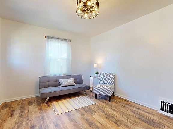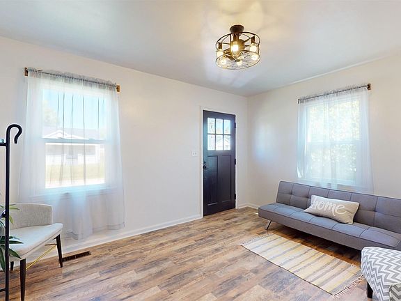Completely renovated doll house in classic black and white exterior showcasing an intriguing arched entrance! Talk about power packed, this home offers NEW tilt-in windows, heat pump system and a/c, water heater, flooring throughout, all new fixtures, freshly painted inside and outside, wooden privacy and chain link fencing, and more. The roof was replaced in 2020-2021. Dive into the 3D Model on the virtual tour link! Plenty of parking between the carport and 2 car detached garage with electric opener. The first floor consists of a large living room, two bedrooms, a remodeled bathroom, and remodeled kitchen. The eat-in kitchen offers counter height seating for dining, new cabinets, granite countertops, tile back splash, and updated appliances. The second bedroom has convenient pet door access to the enclosed back yard. Upstairs is finished attic space with a closet and window a/c unit (348 sqft not counted in finished sqft). The basement level is mostly finished with a family room, fireplace equipped with an electrical outlet for an insert, and the laundry facility/utility room. Very convenient, central location near Wesselman Woods and Swonder, and right between Kiplees and Turonis! 8 miles to USI, 0.6 miles to UE. Wide road with well-maintained homes. Property to be sold "as-is"; Inspection Report Summary available to interested parties upon request.