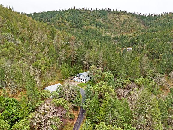2.25% Assumable loan for veterans! Nestled amidst 9.59, this stunning 2500 sqft home has a harmonious blend of modern elegance & natural beauty. The tranquil setting, just a stone's throw away from urban amenities, offers the perfect balance between seclusion & convenience. Entering you are greeted by tall ceilings & beautiful natural light pouring in from the stairwell. 2 lvg/fmy rooms are attached to the kitchen & dining room areas. Upstairs is the lrg master suite w/2 large closets, spacious bathroom, & a private deck peering out over the beautiful forest below. 2 additional bdrms are comfortable & perfect for family or office needs. The guest cottage is spacious w/a bedroom off the living area & full kitchen. Separate meter makes it great for both guests, rental home, or even vacation rental. Whether you're seeking a peaceful sanctuary, or a place to entertain family & friends, this exceptional property offers it all.