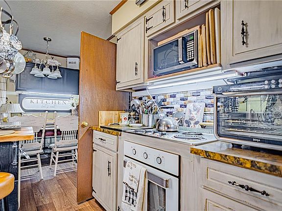 Quiet streetCozy fireplaceSeparate dining roomPot rackCovered back deckSpacious storage buildings