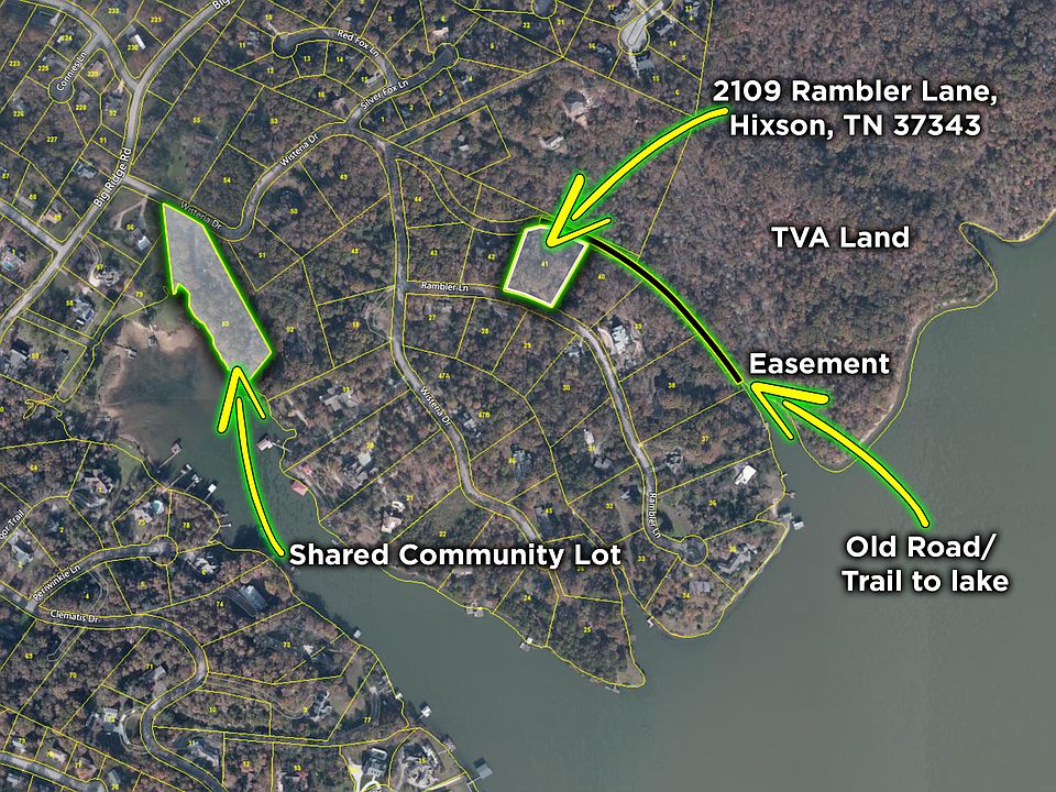 Rare opportunity to own 1.38 acres in Hixson with access to Lake Chickamauga! This beautiful, wooded lot is nestled in an established neighborhood and borders an easement leading to over 200 acres of TVA property. Information provided by RPA implies gravity sewer is available at front corner of lot and within 100' distance to sewer the lot is most likely divisible. 22 Residents enjoy exclusive access to a community dock off of Wisteria Lane. The community lot is 2.81 acres and is shared with 22 lot owners and has gated access. The community lot features paved parking area, picnic table and small dock. Don't miss your chance to build your dream home just steps from Lake Chickamauga!