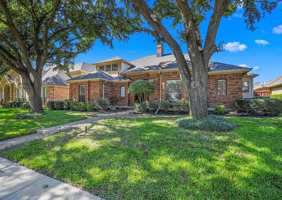 It's a good life here at this Carrollton UPDATED BEAUTY! Located on quiet street near beautiful GREENBELT, this fabulous two-story home offers stately decorative brick exterior overlooking a manicured yard. Expansive floor plan presents 3630 SF of remodeled areas. Elegant dining room, farm-style chef's kitchen with breakfast area and half bath, remodeled Master Bedroom and bath.Two bedrooms downstairs can be used for guest rm and office, second-level family or media rm with wet bar, cheery SunRoom, Lg Utility with sink, pantry and potential freezer. Amenities include granite, hardwoods, grand staircase, two fireplaces AND wet bars, custom built-ins and more.Relax and entertain in backyard Pergola patio area!