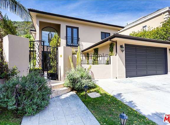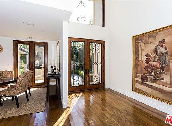Updated Contemporary Mediterranean set back from street and offering privacy and tranquility. Enter this warm and elegant home through glass and iron doors into the spacious entry. High ceilings and windows provide great volume and fill the home with natural light. Features incline oak floors, 2 fireplaces, beautiful staircase with custom iron railing, recessed lighting and speakers in six areas. Exceptional lot size with large yard and saltwater pool, mature citrus trees and a gated front yard. Large family room, living room and kitchen all open to the backyard. A flexible floor plan with 3 bedrooms down, 2 up, a loft area which could be sitting area, office, play area. Room near kitchen can be office/maids room. The dining area opens to front garden with fountain. Expansive master suite with fireplace, sitting area, deck overlooking backyrd and his/hers walk in closets. Large master bath with Separate shower and tub. Kitchen with breakfast area, built-in storage, bar counter, Stainless steal appliances. Inside laundry, sec system, direct entry garage. Located minutes from the Beverly Hills Hotel.