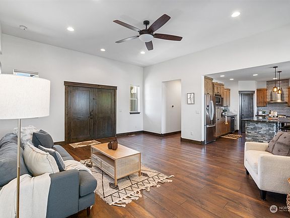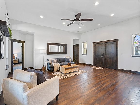 Welcome to this quintessential Pacific Northwest craftsman on a quiet cul-de-sac in a well-established east-side neighborhood. Prepare to be greeted by a spacious living room with tall ceilings, a large kitchen & dining area that looks out to a fenced backyard, & a spacious covered patio, ideal for entertaining. This 2300+ home has a seamless flow & space for all, including 2 bedrooms on the main level, two bedrooms, & a bonus room upstairs. The main level primary suite offers a beautiful tiled walk-in shower & a large walk-in closet. Custom details include granite countertops, Knotty Alder solid core doors, trim & custom cabinets, an oversized garage, and a storage shed. Enjoy easy, comfortable living here.