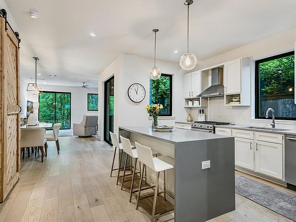 Live in the heart of Austin in this charming & secluded south Austin residence. Positioned conveniently off Lamar & Oltorf, indulge in the vibrant atmosphere & easy access to beloved local hotspots such as Loro, AGBG, Uchi, Ramen Tatsu-Ya & Bouldin Acres. Built in 2017, this 3-story home is fresh & radiant, offering move-in readiness. Meticulously maintained by its original owners, it boasts an open floor plan & the main level seamlessly connects the kitchen, dining & living areas. Revel in the culinary delights of the kitchen adorned with stainless steel appliances, quartz countertops, a center island with a waterfall & a breakfast bar. Natural light streams in through all the windows, including the one above the sink. Designer tile, white oak wood floors, Silestone countertops, custom blinds & quality finishes are just a few of the fabulous features. Upstairs discover the primary bedroom alongside 2 secondary bedrooms, accompanied by a versatile additional living space that is currently set up as an office but could adapt to your lifestyle to be a workout room or cozy sitting area. The primary bathroom offers luxurious amenities including a standalone soaking tub, a walk-in shower & a double vanity. On the 3rd floor is a roof top deck, perfect for entertaining w/a wet bar & scenic views of the surrounding landscape & the downtown skyline. A covered 2-car carport, w/ space for 2 additional vehicles, ensures ample parking. Embrace the tranquility of the natural surroundings, w/ a creek running behind the property providing a serene backdrop. A beautiful setting in the middle of the city. Start your mornings on the back patio, sipping on your coffee & enjoying the relaxing sound of the natural stream. This South Austin gem offers an unparalleled blend of urban convenience & serene charm, giving you the home you always wanted. Owners A&B serve as the HOA. No current HOA dues. Seller carries flood insurance, only $62.50/month. Paid $12,600 in property taxes last year.