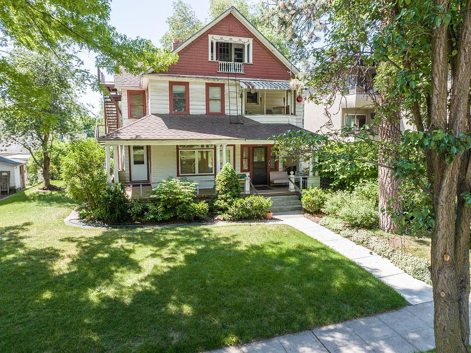 Historic Browne’s Addition Home right on Coeur d’Alene Park! This home was originally built in 1898 and still has that historic charm. It was converted into a 5-plex many years ago, and now has a few updates, but has fallen into some disrepair over the years and needs a new owner to bring it back to life. You could keep it as a 5-Plex or restore it back to its original beauty. The unit layouts vary, but there are two units on the main floor, two units on the second floor, and a 5th unit in the finished attic space. The unfinished basement has a large open area, a bonus storage room, and a handful of storage closets. A very nice exterior steel staircase was added for safety. There are mature trees and nice landscaping surrounding the home, and a nice sized backyard lawn with a wonderful courtyard section, plus additional space off the alley with an older carriage house that is used for storage. This area could also be used for additional parking.