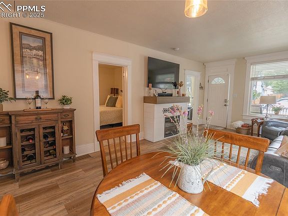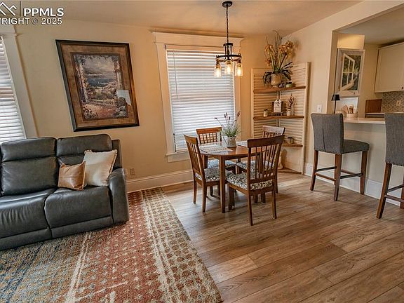 Situated in the heart of Old Colorado City, this residence offers excellent walkability to a curated mix of shops, restaurants, parks, and local services. Built in 1888, this lovingly updated turn-of-the-century ranch-style residence gracefully blends architectural character with contemporary comforts. Interior Features a charming covered front porch welcomes you into a space defined by tall ceilings, abundant natural light through large windows, and original hardwood flooring The oversized bathroom showcases contemporary updates including new flooring, fresh paint, modern light fixtures, expanded vanity storage, and a new toilet. The kitchen delivers both function and style with granite tile countertops, a coordinating backsplash, and seamless access to an enclosed patio and the backyard. The property features a fully fenced backyard with handy alley access and an oversized detached one car garage.