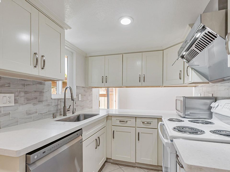 Fresh modern paletteBrand-new modern kitchenQuartz countersStainless appliancesRenovated bathsMultiple outdoor spacesQuiet cupertino cul-de-sac
