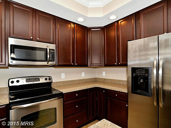 2 level condo with 3 br 2 1/2 baths.Gorgeous kit. w/ granite counters and cherry cabinets & stainless steel energy efficient appliances.Master BR w/ huge master bath. Sep. shower w/ ceramic tile as well as sep. soaking tub & double vanities. 2 huge walk in closets in master br. Balcony off 2nd br & laundry room w/ shelving for storage. Alarm system, crown molding, community pool, garage & driveway