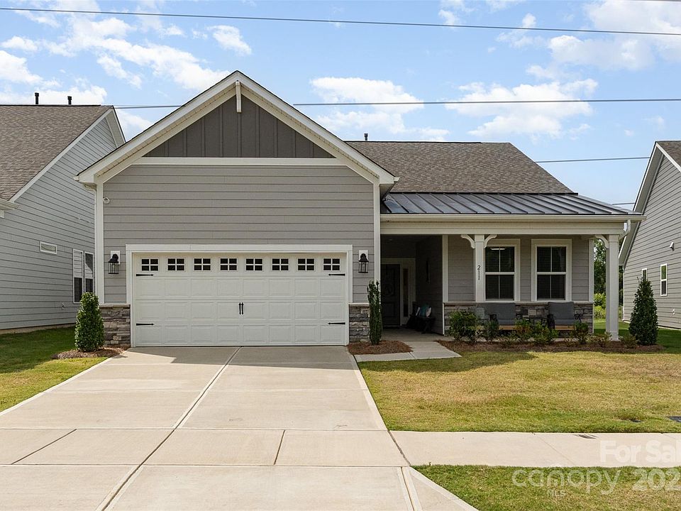 Looking for a 55+ neighborhood with Resort Style amenities and a quick close? Check out this move in ready Ranch Style Farmhouse with a huge island, quartz countertops, stainless-steel appliances, tiled backsplash, custom cabinets & 9 Ft ceilings. This open concept home has tons of upgrades to include a beautiful screened in porch with bamboo shades, extended patio for grilling. The surround sound is inside and out. There are upgraded light fixtures, recessed lighting, ceiling fans & custom wooden blinds throughout. Beautiful drop zone in the foyer. The primary bedroom is huge & the primary bathroom has a tiled roll or walk in Shower! The 2 car garage is extended. All of the yard maintenance is included with the HOA and the backyard is fenced in. This neighborhood has state of the art amenities pickleball, resort style heated swimming pool & spa, cabana's, fitness center, community garden, Firepit, bark park. There is also a full-time lifestyle manager to keep the fun rolling. Vacation Everyday!