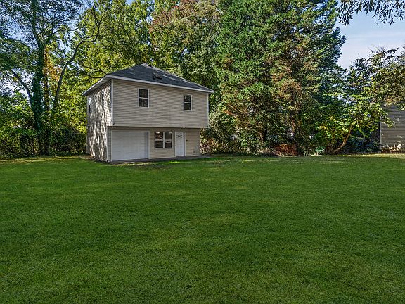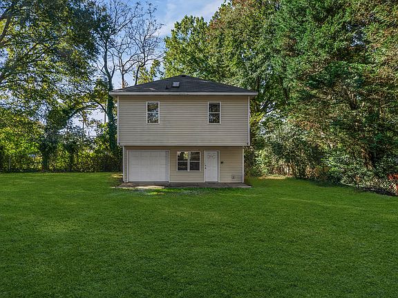 Ground floor includes small living area with 1/2 bath and kitchen, as well as a separate garage space with laundry appliances. Upstairs has 1 large master bedroom with private bath, +2 smaller bedrooms with shared bath.