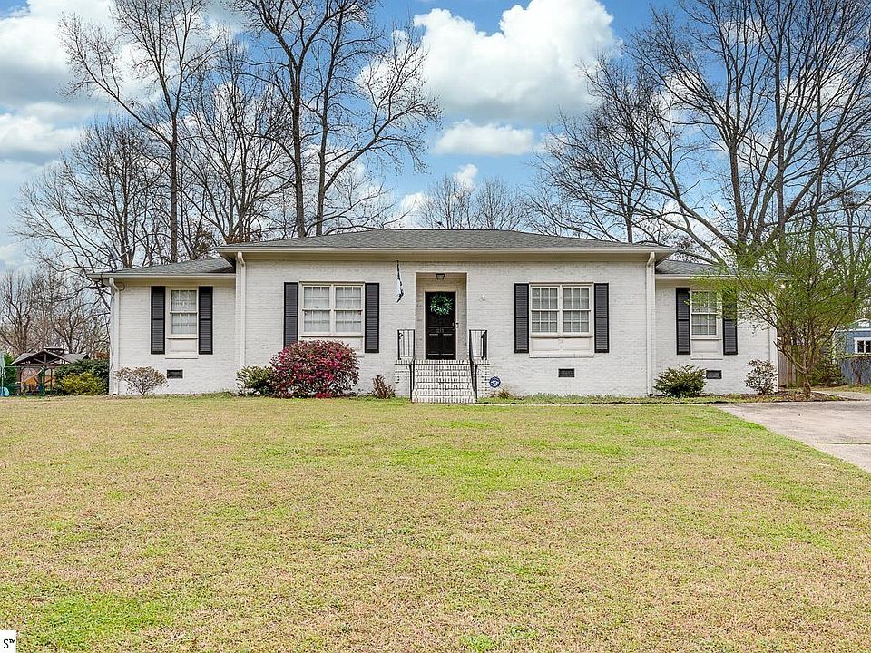 This is the one you have been looking for!! All the charm of a traditional ranch style home with all of the modern upgrades! The painted brick is modern and crisp. Inside there is an open floorplan and beautiful laminate flooring throughout. The great room is the perfect spot for movie night and has a cozy gas log fireplace. It is open into the dining room which makes entertaining a breeze. There is plenty of room for a large table. The amazing kitchen could be featured in a magazine!! It boasts glass front white cabinets, large drawers, stylish stainless appliances, gas cooktop with down draft, subway tiled backsplash, an island large enough for stools, and an eat in area with room for more stools a table or a desk for a home office space. The primary bedroom has a walk in closet and a full bath with a custom tiled walk in shower. The secondary bedrooms are both a good size and share the beautifully upgraded hall full bathroom. The laundry is off the kitchen and offers some additional storage. Outside you will enjoy spending warm spring days on the large patio. Bring your grill and host cookouts. The yard is large enough for the dogs to run or set up a nice game of cornhole. You will love the friendly neighborhood with mature trees and convenient access to shopping and restaurants. Minutes from 385 and Five Forks, Woodruff Rd, or downtown Greenville. You will not find a more beautiful place to call home. Call today and take a look!