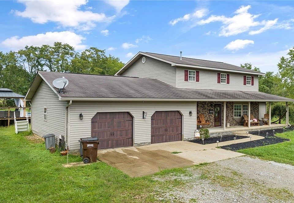 Enjoy the peace and privacy of this two story home with an inviting front porch with tree lined views and situated on 3.5 acres. Very well maintained with updates including first floor bath, new free standing soaking tub in upstairs bath, painting throughout and above ground pool with deck area. Offers 4 bedrooms and 2 full baths. Oversized 2 car garage. This is truly a tranquil setting and one of a kind find.