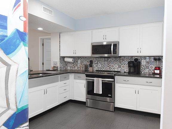Two decksAggregate block patioNew cabinetsNew kitchenStainless steel appliancesStone countertopsVessel sinks