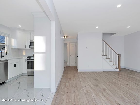 Beautiful bright and airy fully renovated detached home in prime south shore location! Gorgeous tree lined street, 4 bedrooms 3 baths, full finished basement, huge backyard! Brand new electric panel, brand new heating, hot water heater and central A/C! Gorgeous luxury vinyl flooring on the first and second floor, brand new eat in kitchen with large tile flooring, granite counters and tile backsplash! FInished basement has great space, slop sink in laundry area and half bathroom! Brand new concrete driveway and entryway! Awesome block, convenient location, short distance to hylan blvd, public transportation, and all shopping! If you are looking for a truly renovated move in ready home, this is the one! Meticulous work from a quality contractor, do not miss this one! Neat and clean, an absolute must see!