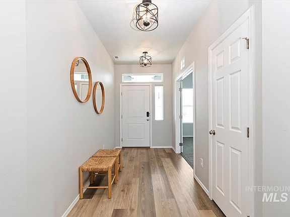 Experience the perfect blend of small-town charm and modern comfort in this four-bedroom, single-level home in Caldwell's Topaz Ranch. This beautifully designed home is perfect for entertainment, featuring gourmet kitchen with Solid Surface countertops, custom cabinetry, subway tile backsplash, stainless steel appliances, generous island and walk-in pantry. Open layout flows seamlessly into bright great room adorned with gas fireplace with custom shiplap mantel and entertainment niche. Primary suite with luxurious en-suite bath and phenomenal walk-in closet. Well equipped laundry room, mudroom with built-in storage bench and spacious three-car garage. Luxury Vinyl Plank flooring, vaulted ceilings, new window treatments and elegant finishes throughout. Peaceful living carries into tranquil outdoor retreat featuring extended gated patio with large pergola, grill pergola and meticulous landscaping. The charming neighborhood is just moments from top-rated schools, shopping, dining and outdoor recreation.