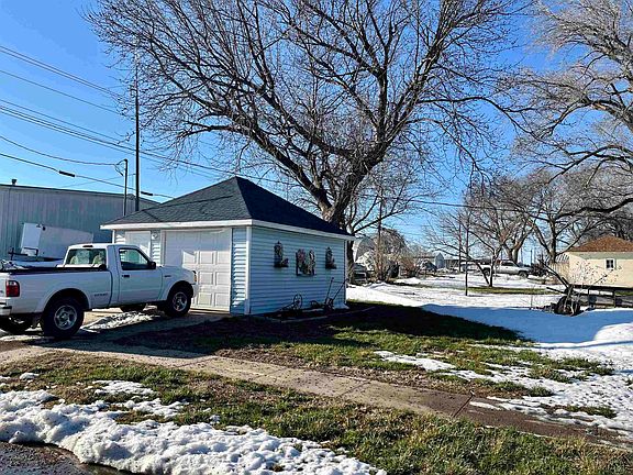 Nestled in the heart of a quaint small town, this charming bungalow on a large corner lot exudes warmth and character. Everything you need is all one level featuring a spacious master bedroom, a cozy second bedroom, an office/sitting room, spacious dining room with built in corner shelf, living room with lots of natural light, an eat-in kitchen with large island, a full bath and main floor laundry. The front and side covered porches are perfect for relaxing or entertaining. There is a detached garage and a storm cellar with a concrete floor for storage and storms. Just a short walk to local shops, parks, and schools, this property offers a blend of convenience and charm. This bungalow is awaiting its next loving owners.
