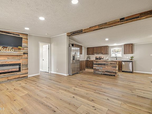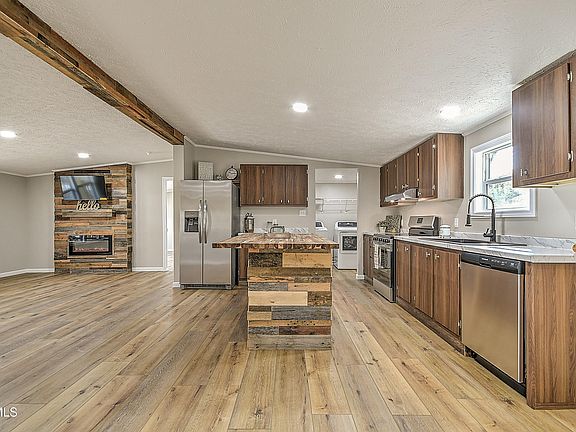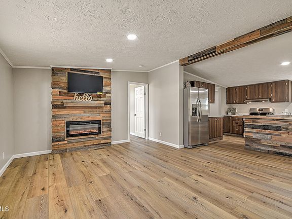 Experience the charm of this beautiful new home, perfectly situated in a sought-after Weber City location. You'll be captivated by the expansive covered front porch, featuring a striking vaulted wood ceiling, as well as a second porch at the rear of the house, perfect for outdoor relaxation. This home is packed with valuable upgrades, including a washer, dryer, and refrigerator, as well as luxurious 8 ml vinyl flooring throughout. Enjoy custom cedar shutters, a spacious island topped with butcher block, drywall finishes, and elegant real wood crown molding and baseboards. For energy efficiency, benefit from the $1,600 energy-efficient hot water heater and a cozy electric fireplace, complete with a mounted TV. The property boasts access to award-winning schools and is just minutes away from Kingsport. All information provided is considered reliable but should be verified by the buyer.