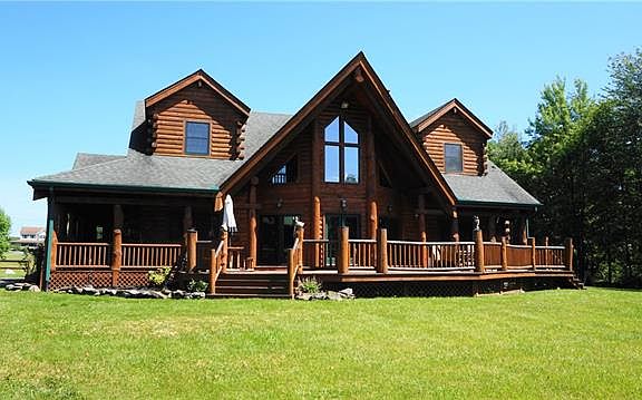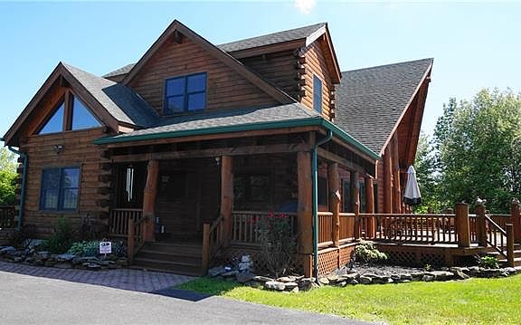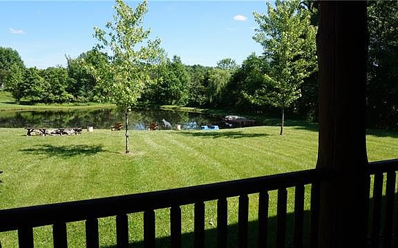 Gorgeous Custom Built Chalet on 4+ Acres with large swimming pond, pristine mountain views and set far from road for privacy!Over 3,600 sq. ft. of living space! Master Suite on the main floor featuring jetted tub & sit down shower and a walkout to deck! Front porch entry to wrap around deck for entertaining to the side porch you will find your quiet time to relax.Gourmet granite kitchen with stainless steel appliances, eat-in kitchen with walk-in pantry, flowing into the formal dining area where raccoons and bear carved massive trees bring whimsy to your experience. Formal living room featuring cathedral ceiling, new energy efficient fireplace & doors to outdoor living. Gleaming wood tones though the home as you go up stairs of logs to open family room & views from all windows! Two large bedrooms with private baths! Finished lower level has media area, gaming & perfect for gym. Bonus of detached 4/6 car heated garage & outdoor furnace if one wishes to utilize.Don???t miss this rare find!
