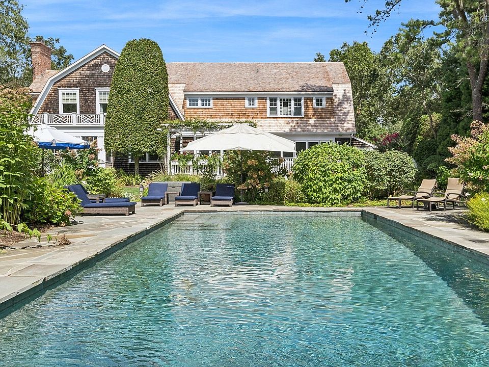 Minutes from East Hampton and Sag Harbor's village main streets, this beautifully maintained 5-bedroom home offers all the amenities for the quintessential Hamptons summer, including impeccably landscaped outdoor spaces with a heated gunite pool, a storybook garden, and a finished lower level with a screening room, game room, and wine cellar. Tucked at the end of a long driveway and surrounded by mature landscaping, this updated home spans 6,000 square feet and includes an attached two-car garage with a gated gravel driveway. Upon entering the gated property, you'll be greeted by exceptional landscaping and a stone walkway leading to the front porch, which opens to a gracious foyer and a sweeping staircase, creating a grand entrance.The dining room, formal living room, and kitchen all overlook the show stopping backyard, with multiple doors opening to the rear al fresco dining patio, which looks at the oversized pool. The gourmet kitchen features a large island and is equipped with a full suite of updated appliances. A junior primary suite, powder room, and laundry room complete the expansive main level. Off the laundry room is a two car attached garage. Upstairs, an airy landing leads to three en suite bedrooms and a second laundry room. The luxurious primary bedroom includes an attached workout room/office, fireplace with a lounge area, an elegant bathroom featuring a dual vanity, oversized tub, and generous closets. The finished lower level offers a spacious recreation/media room, a wine cellar, and a screening room. Set on a beautifully manicured 1.76-acre parcel with top-notch landscaping, this unique property is conveniently located near ocean beaches and the charming main streets of Sag Harbor and East Hampton.