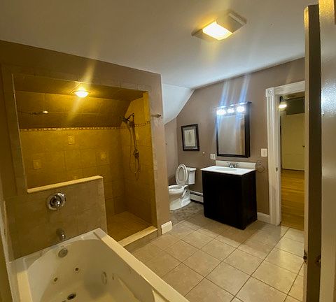 Great top floor with 3 good size bedrooms. Hard wood flooring through out , recessed lighting, in unit laundry, Jacuzzi tub with separate shower, Gas heat . Good credit , proof of income and references.