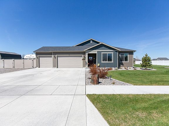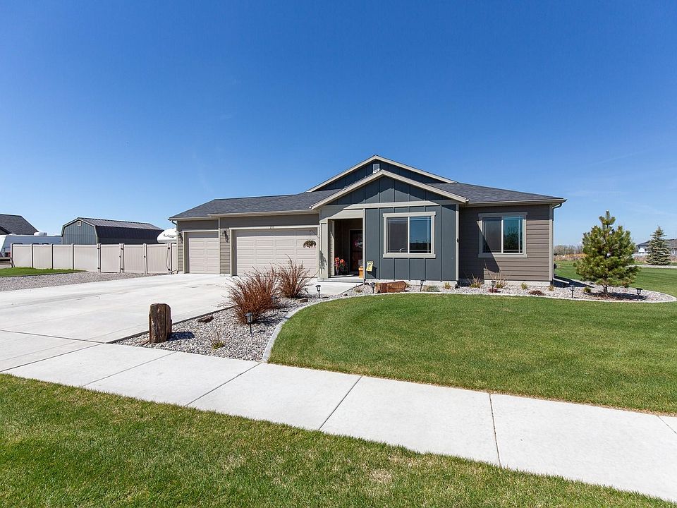 This home doesn't skip a beat with numerous upgrades. The single level home features 4 bedrooms (Or one of them also makes a great office) and 2.5 baths. The backyard features the most incredible views in the valley with a fully fenced vinyl fence. The massive finely landscaped yard features a 10 by 16 shed, room to park your RV with its own RV septic dump and 220 to plug it in. The home has a 3-car garage to park all of your other toys. The single level living is a plus with the office/bedroom right when you walk in with beautiful french glass doors. The kitchen has a big island and tons of cabinets that extend into the dining area and a pantry to complete this kitchen with high end quartz throughout. The master bedroom has a patio door to take you outside to the hot tub to enjoy those beautiful views. A few other add ons are the AC, water softener, house humidifier, well for irrigating and custom blinds. Come check this well-maintained home out today.