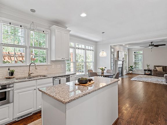 Nestled in the highly sought-after Highcroft community, this beautifully updated 4-bedroom, 5-bathroom home offers a perfect blend of luxury, comfort, and modern sophistication. Thoughtfully designed for both everyday living and entertaining, this home features a first-floor bedroom with a full bath, making it ideal for guests or multi-generational living. Every bathroom has been elegantly remodeled within the last four years, complementing the stylishly renovated chef's kitchen, which boasts high-end finishes and modern upgrades. The finished third floor offers a spacious and versatile bonus room with a full bath, perfect for a media space, home office, or additional guest suite. Recent upgrades include a roof and HVAC system (2020), ensuring peace of mind, along with a new water heater (2022). The home's interior was freshly painted in 2021, and the second floor features gleaming hardwood floors and plush carpet, both installed in 2021. Step outside to experience resort-style outdoor living. The beautifully landscaped backyard features a custom blue stone patio, pergola, built-in gas grill, and a serene water feature, creating the perfect retreat for relaxation and entertaining. Impeccably maintained and designed for modern living, this home is a true Highcroft gem. Don't miss this exceptional opportunity to live in one of the most sought after communities in Cary!