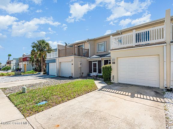 NEW ROOF for this BEACH TOWNHOUSE with a PRIVATE ATTACHED GARAGE & FENCED YARD. NO HOA FEES! Open floor plan with 3 oversized bedrooms, 2.5 bathrooms. SEPT 2025 Titan shingles with Force FX technology, 160MPH wind warranty! Great feature since the BEACH IS AT THE END OF THE BLOCK! Front screened porch, double front doors, large kitchen with stainless steel appliances and a mobile island. There is a dedicated dining area off the kitchen and outside fenced yard. Upstairs enjoy the private balcony off the master and the en-suite bath with a beautiful tiled shower. The 2nd bed/office has a larger private balcony to watch and feel the ROCKET LAUNCHES. Port Canaveral offers several waterfront dining options. Easy access to cruise ships, surfing, fishing, biking, boating and swimming are the way of life here. LIVE IN PARADISE ALL YEAR or use as an INCOME PROPERTY for cruisers, Space X or Blue Origin workers. Easy Orlando access from 528 to airport & attractions