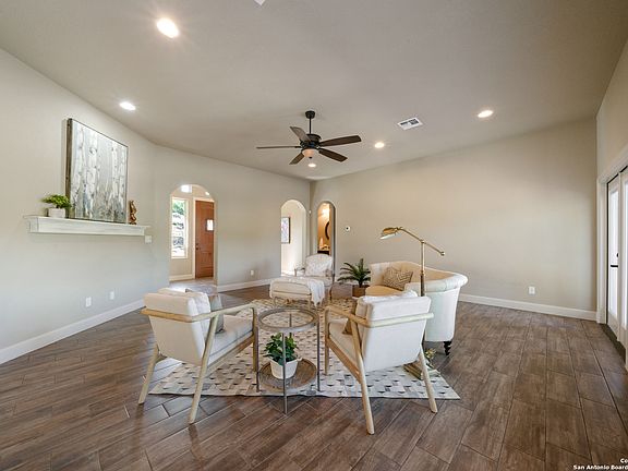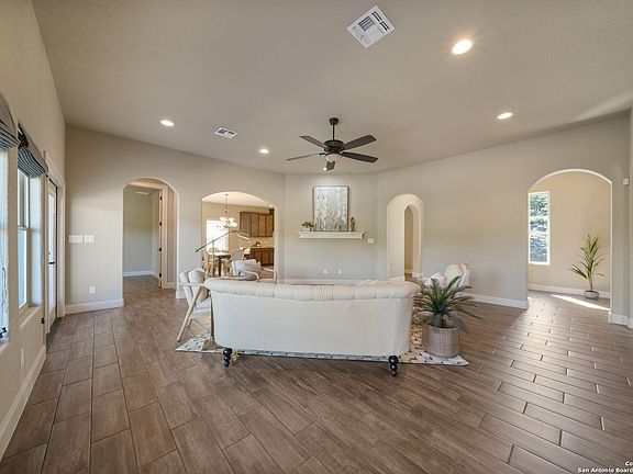 Sitting on 2 acres of land, this fabulous Tuscan estate is ready for you to add your personal touches! Within the home, you will find exquisite features such as excellent wood-like flooring and an open floor plan. The living room is spacious and inviting and flows directly into the kitchen and dining room area. Any home chef will appreciate this grand kitchen featuring granite countertops, stainless steel appliances, an electric stove, and ample cabinetry. Luxury awaits with each bedroom including its own full bath. Within the primary bedroom, you will find gorgeous tray ceilings and windows that allow natural light to pour through. Glorious en suite bath and walk-in closet provide plenty of space and give the primary bedroom an elegant feeling. You can create your own oasis with an extra acre of undeveloped land! Despite being near highway 281, this home still gives the sense of country living. Take advantage of this rare opportunity and schedule your private showing today.