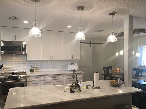 This beautiful 4 bedroom, 2 bath Winter Park Pines home has been meticulously renovated by its current owners and is totally move-in ready. Enter into the very open living space with hardwood floors. The NEW kitchen features gorgeous white cabinetry, marble countertops, farmhouse sink, pendant lighting, stainless steel appliances and an island with plenty of room to eat! The fridge even has a built-in coffee maker. The family room features a wood-burning fireplace and leads to the spacious backyard with a NEW saltwater pool. This home has plenty of storage space plus a HUGE inside laundry room and 2 car garage. Updates include- new roof, a/c, kitchen & bathrooms, garage door, exterior paint, plumbing, pool & deck, tankless hot water heater, R-19 insulation, gutters. Plus it is located in the highly-sought school district- Brookshire/Glenridge/WPHS!