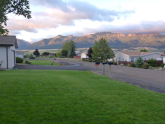 3BR 2BA Mfg. home on nicely landscaped lot. Move in ready, clean and well cared for. Certified wood stove in the living room. Cover front porch with stunning view of the mountains. Fenced back yard. Underground sprinklers. Kitchen is plumbed for propane range.