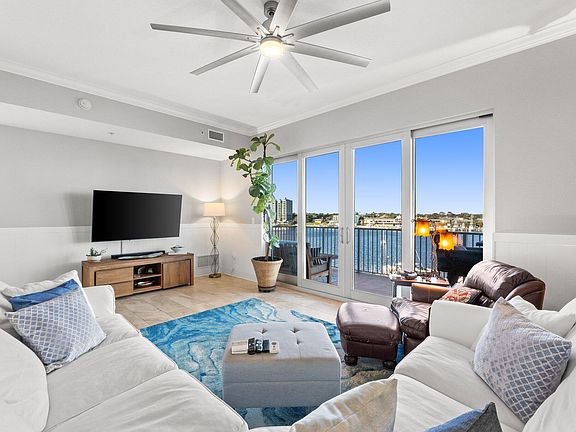Premier Harbor-Front Condo with Private Beach Access and Luxury Amenities. Experience the pinnacle of coastal living in this 5th-floor, 2-bedroom, 2-bathroom condo at the prestigious Harbor Lights gated community on the Destin Harbor. Boasting 1,390 square feet, this unit offers one of the larger and more thoughtfully designed 2-bedroom floor plans in Destin. Equipped with breathtaking views and modern updates, soak in the sweeping views of Destin Harbor, the Gulf, and the pass from your private balcony. This unit is meticulously updated featuring a beautiful kitchen with custom cabinets, a stylish glass-and-stone backsplash, granite countertops, a single-basin stainless steel sink, and dimmable under-cabinet lighting. Each bathroom is outfitted with designer lighting and elegant finishes. 4" Plantation shutters are found in both bedrooms and the kitchen. Other features include Crown molding in the master suite and living room along with 72" six-speed ceiling fans. As well as LED recessed lighting and a Guardian in-duct air purifier that ensures clean, fresh air throughout the home.