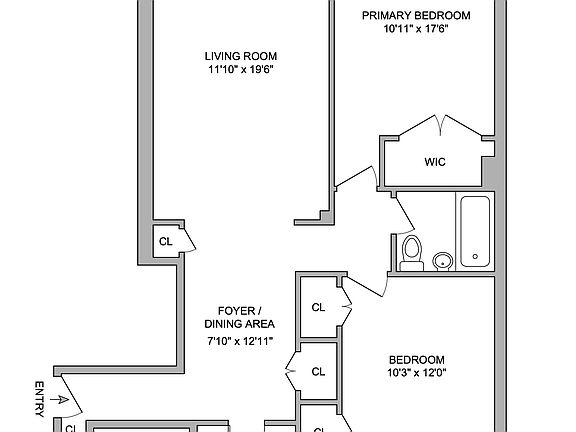 Measuring 11'x17.5', the primary bedroom features a king-sized bed and a large closet. Custom CitiQuiet windows insulate against street noise.