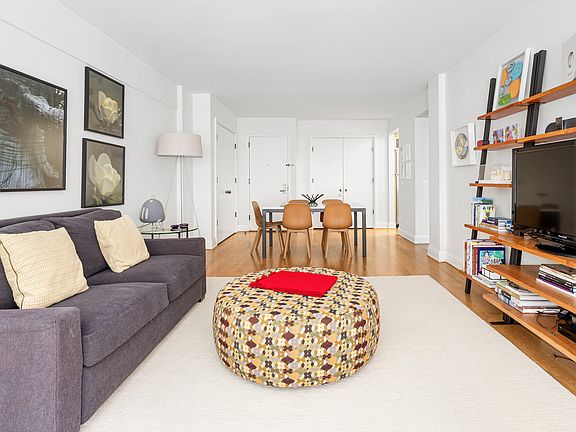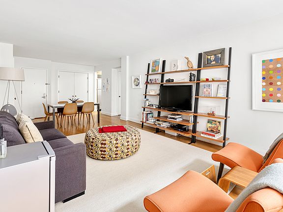 The building offers a full-time doorman, bike room, gym, package room, live-in super, laundry, and storage.