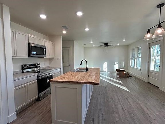 BRAND NEW AND COTTAGE COZY, This 3 Br, 2 Ba Custom built home entertains an open floor-plan and utilizes the space perfectly allowing a positive functioning layout for new beginnings with family and entertaining. Primary bedroom being private with en-suite and walk in closet. Utility off kitchen with side door leading to an open deck and the HUGE privacy fenced in back yard perfect for family pets and kiddos. Kitchen offers built in microwave, range with oven and dishwasher. Decorative lighting, vinyl plank flooring and a beautiful Modern style front door accents the home well. Owner has a small punch list to complete then is ready for you to call this HOME !