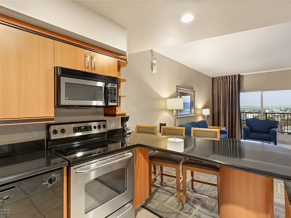 Welcome to the most popular floor plan, the PRINCESS SUITE - the only condo with a full size washer/dryer and a cozy electric fireplace! This spacious condo also features 2 queen beds in the bedroom and a queen sofa bed in the living room. It is continuously rented by show entertainers and temporary Las Vegas visitors. Located just 2 blocks east of the iconic Las Vegas Strip, this suite offers expansive city views and located near the refreshing rooftop pool. It’s currently in the Platinum rental program and has been sold out for months, highlighting its high demand and rental potential. The suite is fully furnished, boasting a large 108 sq. ft. walk-out balcony, all appliances, TVs, and more. Owners enjoy fantastic amenities such as indoor and outdoor heated pools, a fitness center, room service, a restaurant, and a lobby bar. Don't miss this opportunity to own one of Las Vegas's best value condo hotels!