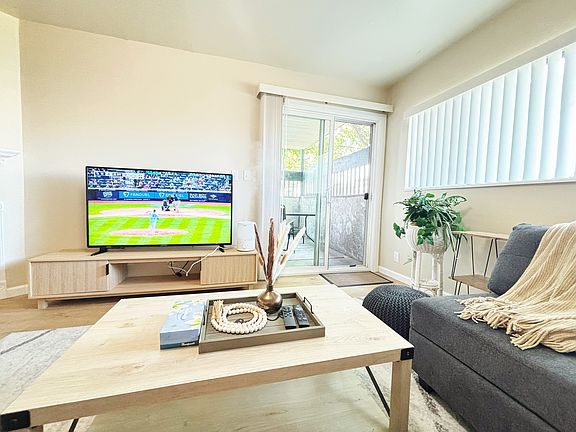 The apartment has two master bedrooms with queen beds. And both with a walk-in closet and a full master bathroom. The third bedroom can be furnished either as another bedroom with a full bed, or as an office space, at the request of the renter(s). The living room will be furnished with brand new couches and smart TV. It has a fireplace (gas). The apartment has central cooling and heating. It contains ample storage space it also has a lovely outdoor patio that allows summer barbecue. Community pool access is available.