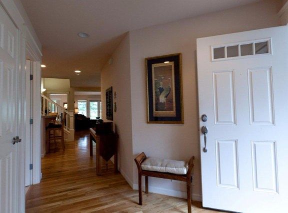 Welcome home to this meticulously cared for condo on the golf course. Large living room with french doors that open to a Trex deck! Main floor features striking hardwood floors, dining room, master with generous walk in closet, master en suite bath, laundry, 2nd bedroom and full guest bathroom. Upstairs features a huge bonus room/bedroom, slider with golf course views and another full bathroom! Gorgeous kitchen boasts granite tiles, pantry and stainless steel appliances. Custom storage in the garage and the attic! Relax and enjoy golf course living at its finest!(stained glass does not convey and window treatments in downstairs bedroom do not convey.)