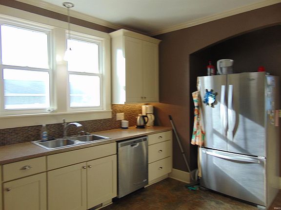NEW METAL ROOFING!! IMMEDIATE POSSESSION!! Spacious 1.5 story 3 bedroom 2 bath home located in East Bluffton has approx. 2600 square feet of living area plus a large unfinished basement. The home is situated on 2 city lots with 6' vinyl privacy fencing. In addition, there is a detached 2 car garage with alley entrance. Updates include vinyl siding in 2019, complete new kitchen in 2015, major rewiring in 2015, new AC in 2016, many new vinyl replacement windows in 2019 and many others. This home features large rooms with loads of storage, open and heated front porches, interior and exterior entrances to the basement. Upper level is spacious 3rd bedroom area with full bath and 3 large closets. Fireplace not functioning.