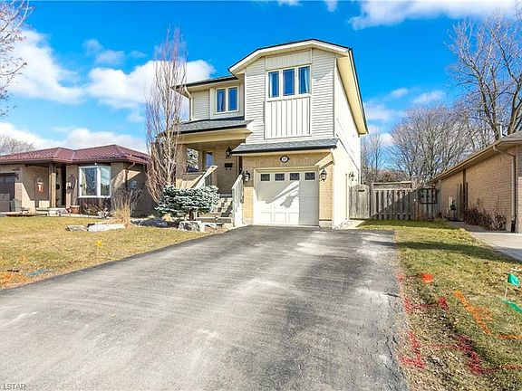 South London, Pond Mills Area! Beautiful 2 storey-multi-level home situated on a quiet court location with 140' deep lot! 3 bedrooms, with Primary Bedroom featuring a walk-in closet and 4-piece bath, note the large bedroom sizes, 4-piece family bath. Elegant Honeywood maple kitchen cabinets with crown molding, Granite counters, stainless steel appliances with gas stove, and pantry. Open concept dining room with hardwood floors overlooking the large great room with 11' ceilings and a natural woof fireplace, with triple patio doors leading to an 18' x 16' deck and 12' x 12' stamped concrete patio. Lower-level family room with gas fireplace and 2-piece bath, laundry room with washer and dryer, fridge and freezer included. 2 fireplaces. 1 car attached garage with inside entry and automatic garage door, double driveway fits 4 cars! Fully fenced rear yard. Front porch area. The roof was replaced in 2022 with 50-year shingles. Easy access to the 401, park, and many amenities.