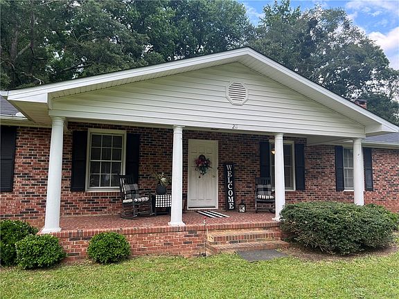 Don't miss out on this one-level living all brick home situated on approx. 1.64 acres within the Town of Honea Path. Convenient. Vinyl eaves. Fenced back yard with a drive-thru gate and two walk-thru gates. Creek. Woods behind house give privacy. City water, sewer, and trash pickup. City and County property taxes combined for 2023 were $1728.42 (4% primary residence tax rate). 3 bedrooms and 2 full baths. The spacious great room has fireplace with gas logs and built-ins. The Seller says the newer gas logs are awesome as backup heating should power go out. Formal dining. All of the living area has pre-engineered hardwood floors. NO CARPET IN HOUSE! Kitchen has an abundance of cabinets & drawers and so much granite counter space for food prep. Wall pantry. Wonderful window over sink overlooking the back yard. Stainless appliances. Laundry space with cabinet storage. Washer and Dryer can Rocking chair front porch as well as a raised and covered rear porch. 2-car attached garage with spacious storage room and pull-down attic access. Detached outbuilding can be a great workshop with electricity or wonderful storage space and has newer shingles. Some insulation has been added. A huge lean-to is off the back. Gas pack is approx. 2-3 years old. Smooth ceilings. Moldings. Chair railing. 3 nice pecan trees. Rare to find a large lot, lower maintenance BRICK home all on one-level with AMAZING Internet service with zero HOA hassles. Home is equipped with 10 CAT6 cable hi-speed Internet connections. 2 in each of the 3 bedrooms, 2 in the den, and 2 in the outside workshop/storage building. Netgear-Prosafe 24 port gigabit switch control box. Fiber optic cable was installed on Elizabeth St. in 2024. A DREAM!!!